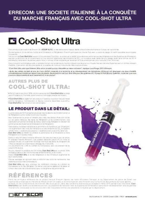 Cette année, la participation de Errecom Sri à EQUIP AUTO, un des événements majeurs dédiés à l'Automobile aftermarket en Europe, est reconfirmée. Société leader en chimie dans le monde de la Climatisation et Réfrigération, Errecom participera à la foire de Paris avec un stand de design, où seront exposées les principales nouveautés.