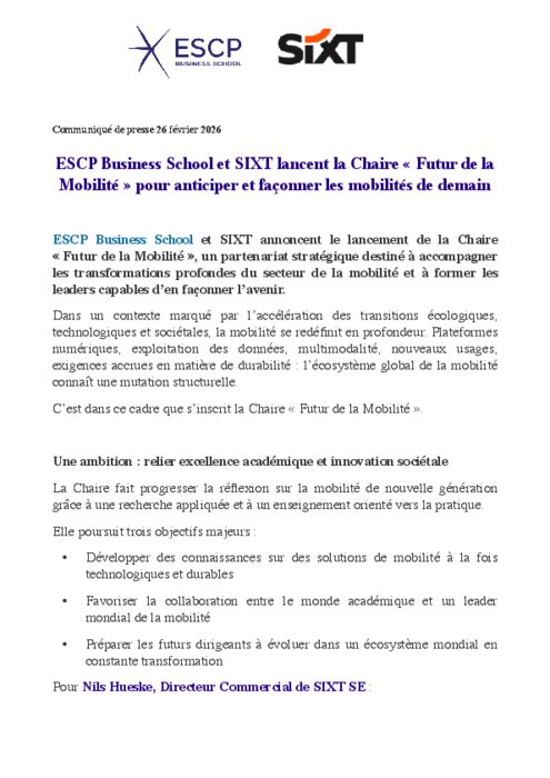 ESCP Business School et SIXT lancent la Chaire « Futur de la Mobilité »