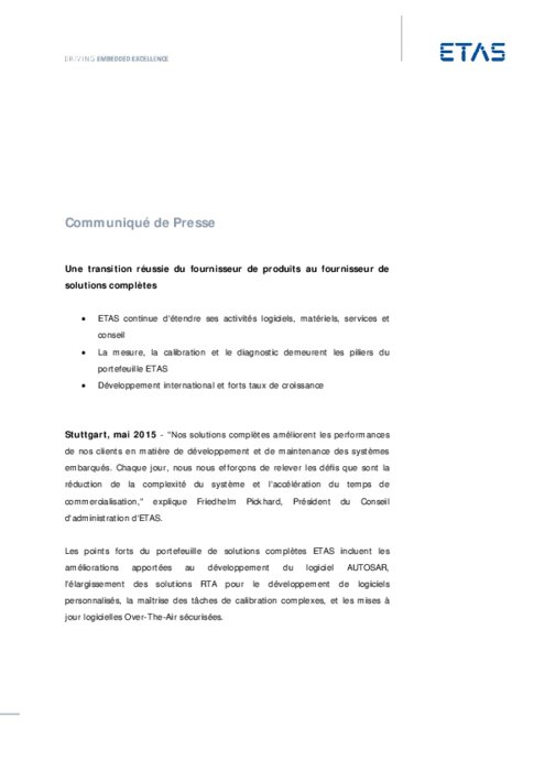 ETAS - Transition réussie des produits aux solutions complètes