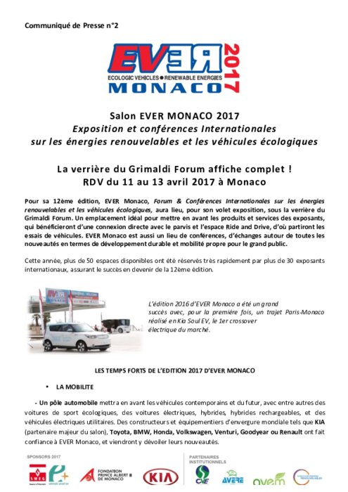 Pour sa 12ème édition, EVER Monaco, Forum & Conférences Internationales sur les énergies renouvelables et les véhicules écologiques, aura lieu, pour son volet exposition, sous la verrière du Grimaldi Forum. Un emplacement idéal pour mettre en avant les produits et services des exposants, qui bénéficieront d’une connexion directe avec le parvis et l’espace Ride and Drive, d’où partiront les essais de véhicules.