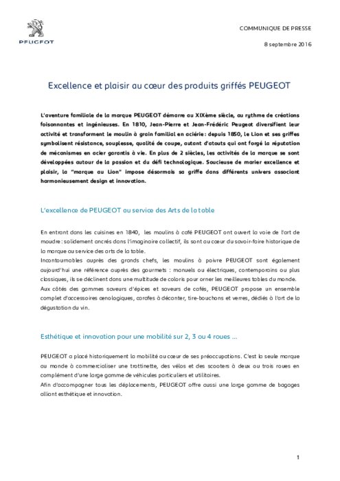 L’aventure familiale de la marque PEUGEOT démarre au XIXème siècle, au rythme de créations foisonnantes et ingénieuses. En 1810, Jean-Pierre et Jean-Frédéric Peugeot diversifient leur activité et transforment le moulin à grain familial en aciérie : depuis 1850, le Lion et ses griffes symbolisent résistance, souplesse, qualité de coupe, autant d’atouts qui ont forgé la réputation de mécanismes en acier garantis à vie.