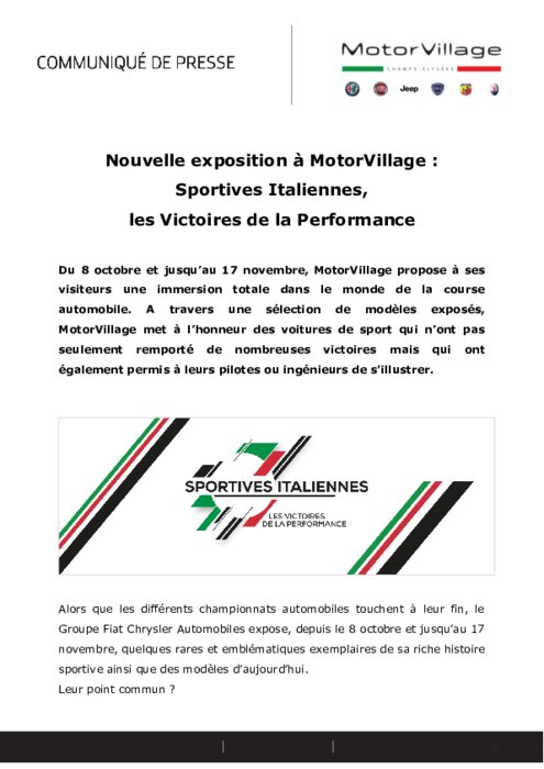 Du 8 octobre et jusqu’au 17 novembre, MotorVillage propose à ses visiteurs une immersion totale dans le monde de la course automobile. A travers une sélection de modèles exposés, MotorVillage met à l’honneur des voitures de sport qui n’ont pas seulement remporté de nombreuses victoires mais qui ont également permis à leurs pilotes ou ingénieurs de s’illustrer.
