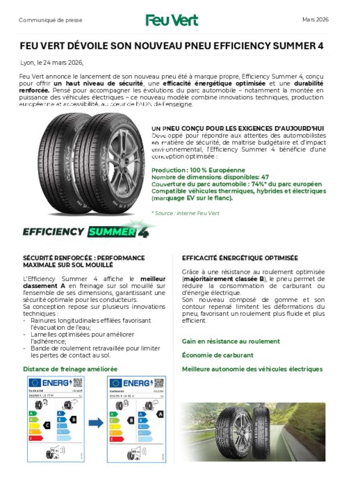 FEU VERT DÉVOILE SON NOUVEAU PNEU EFFICIENCY SUMMER 4