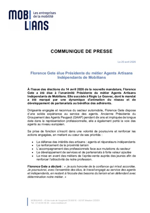 Dirigeante engagée et reconnue du secteur automobile, Florence Gete dispose d’une solide expérience au service des agents. Ancienne Présidente du Groupement des Agents Peugeot (GAAP) pendant dix ans et impliquée de longue date dans la représentation professionnelle, elle a également porté la voix des agents au niveau européen.