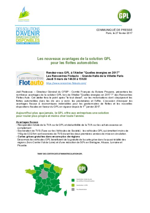 Joël Pedessac – Directeur Général du CFBP - Comité Français du Butane Propane, présentera les nombreux avantages de la solution GPL lors de l’Atelier "Quelles énergies en 2017 ?" des Rencontres Flottes Auto. Cet atelier fera le point après "le tout diesel", sur les motorisations dont s’équiperont les flottes automobiles dans les dix ans à venir, les prestataires et l'offre. L'occasion d'évoquer les avantages fiscaux & économiques indéniables pour les gestionnaires de flottes...