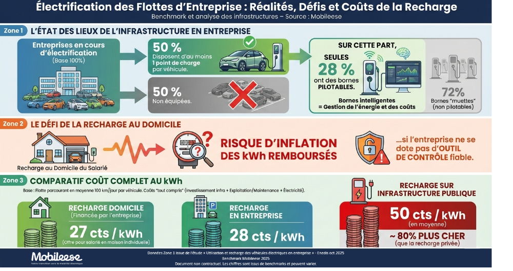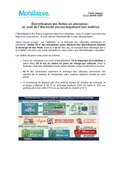 L’électrification des flottes progresse dans les entreprises, mais un angle mort demeure largement sous-estimé : le coût réel de l’électricité liée à cette décarbonation. Selon l’étude Enedis sur l’utilisation et la recharge des véhicules électriques en entreprise, seules 36 % des entreprises ayant démarré leur électrification pilotent la recharge de leur flotte. Dans la majorité des cas, la consommation électrique liée à la mobilité n’est donc pas suivie précisément, alors même que l’électrification s’accélère.