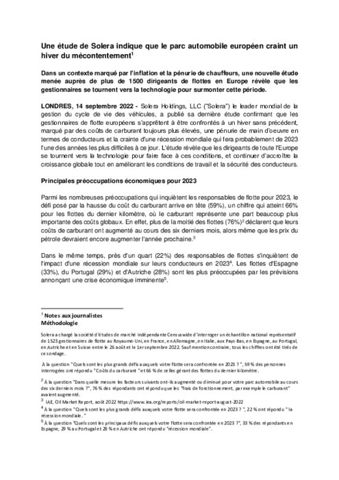 Services 15 septembre 2022 - 11:30 Dans un contexte marqué par l’inflation et la pénurie de chauffeurs, une nouvelle étude menée auprès de plus de 1500 dirigeants de flottes en Europe révèle que les gestionnaires se tournent vers la technologie pour surmonter cette période. PDF (236 Ko) Télécharger