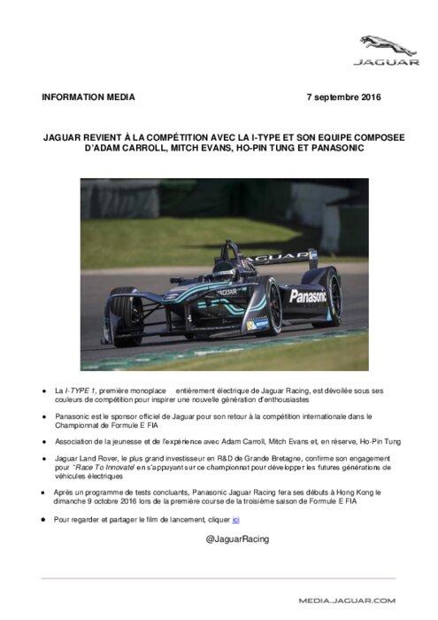 Le groupe Jaguar Land Rover emploie 9.000 ingénieurs et constitue la plus grosse plate-forme de recherche et développement de toute l'économie britannique. Il souhaite s'engager dans la "course à l'innovation" que représente la Formule E, explique le communiqué du groupe.