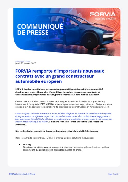 Forvia : des contrats à un milliard de dollars avec un constructeur européen