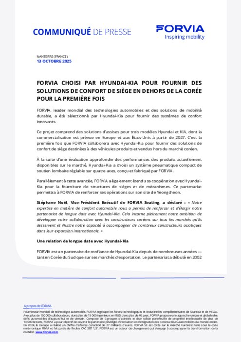 À la suite d’une évaluation approfondie des performances des produits actuellement disponibles sur le marché, Hyundai-Kia a choisi un système pneumatique compact de soutien lombaire réglable sur quatre axes, conçu et fabriqué par Forvia.