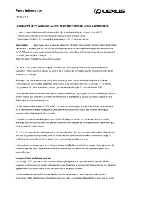 FUTURE GRANDE BERLINE LEXUS À HYDROGÈNE