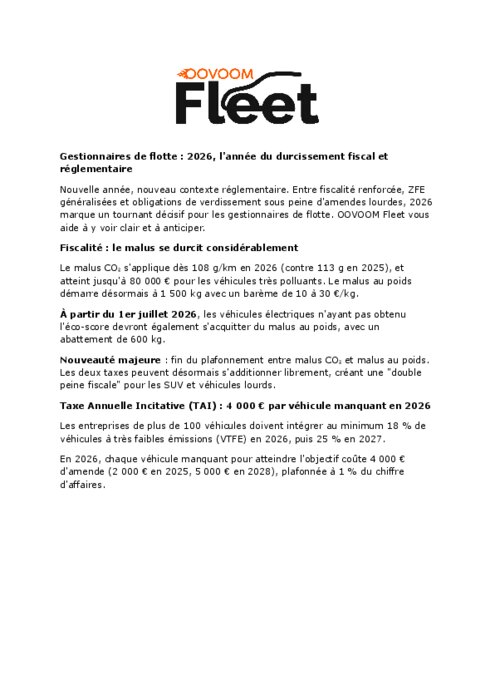 Gestionnaires de flotte : 2026, l'année du durcissement fiscal et réglementaire (Fleet)