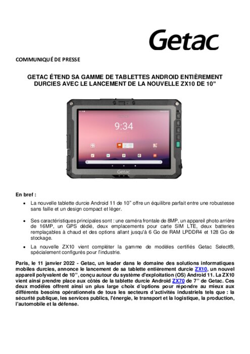 Getac, un leader dans le domaine des solutions informatiques mobiles durcies, annonce le lancement de sa tablette entièrement durcie ZX10, un nouvel appareil polyvalent de 10’’, conçu autour du système d'exploitation (OS) Android 11. La ZX10 vient ainsi prendre place aux côtés de la tablette durcie Android ZX70 de 7’’ de Getac. Ces deux modèles offrent ainsi un plus large choix d’options pour répondre au mieux aux différents besoins opérationnels de tous les secteurs d’activités industriels...