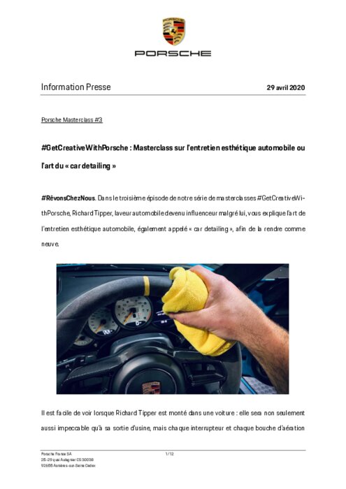 #RêvonsChezNous. Dans le troisième épisode de notre série de masterclasses #GetCreativeWi-thPorsche, Richard Tipper, laveur automobile devenu influenceur malgré lui, vous explique l'art de l'entretien esthétique automobile, également appelé " car detailing ", afin de la rendre comme neuve.