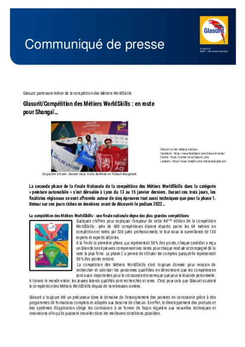 La seconde phase de la Finale Nationale de la compétition des Métiers WorldSkills dans la catégorie « peinture automobile » s’est déroulée à Lyon du 13 au 15 janvier derniers. Glasurit, en tant que partenaire métier de l’événement, revient sur les moments forts, détaille les épreuves, vous fait découvrir le classement final de la catégorie « peinture automobile », et vous présente le programme de formation du grand gagnant avant la finale internationale en octobre prochain.