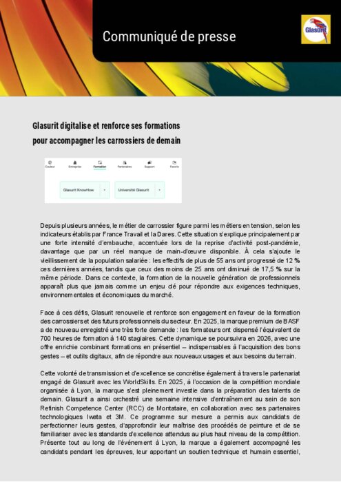 Glasurit digitalise ses formations pour accompagner les carrossiers