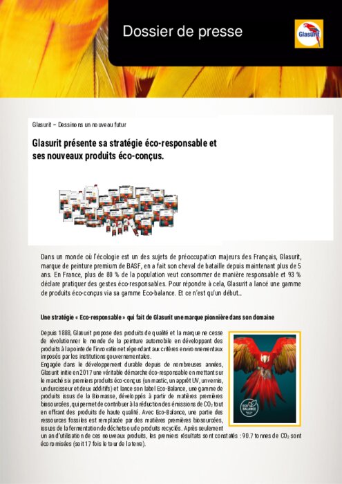 Dans un monde où l’écologie est un des sujets de préoccupation majeurs des Français, Glasurit, marque de peinture premium de BASF, en a fait son cheval de bataille depuis maintenant plus de 5 ans. En France, plus de 80 % de la population veut consommer de manière responsable et 93 % déclare pratiquer des gestes éco-responsables. Pour répondre à cela, Glasurit a lancé une gamme de produits éco-conçus via sa gamme Eco-balance. Et ce n’est qu’un début…