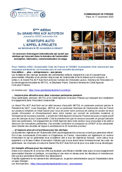 Grand Prix Acf Autotech : appel à projet des startups auto !