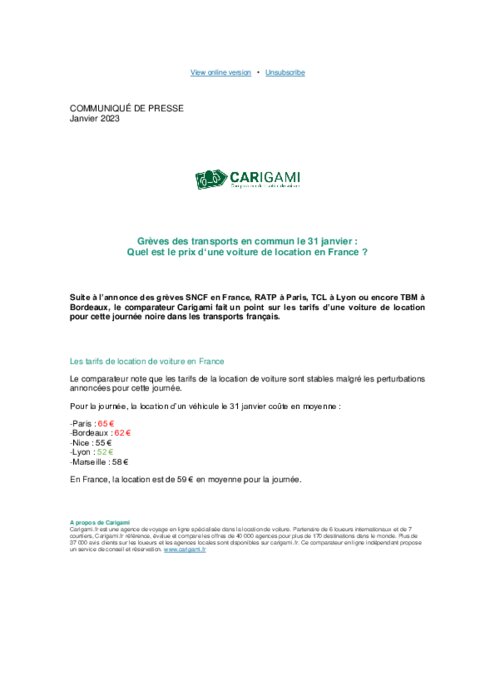 Grèves le 31 janvier : Quel est le prix d‘une voiture de location en France ? (Carigami)