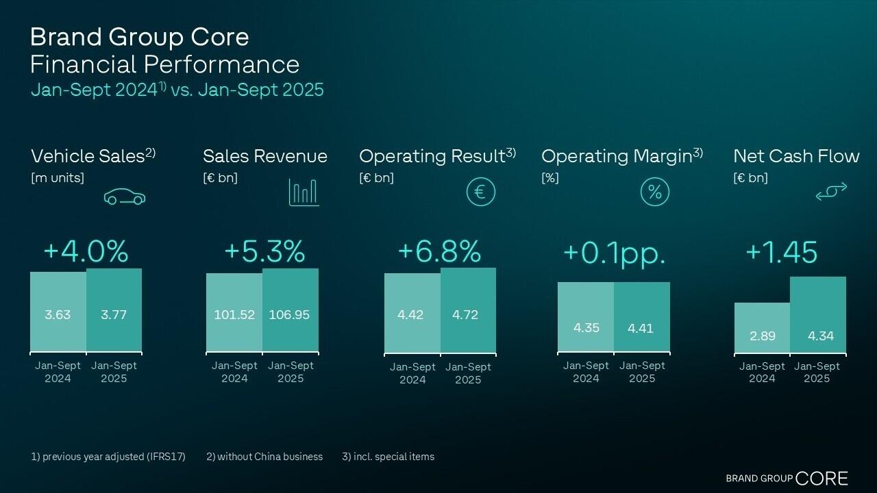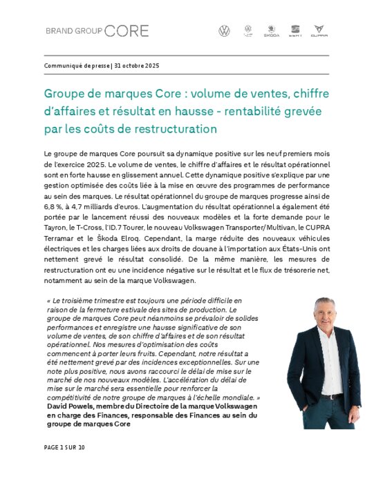 Le groupe de marques Core poursuit sa dynamique positive sur les neuf premiers mois de l'exercice 2025. Le volume de ventes, le chiffre d'affaires et le résultat opérationnel sont en forte hausse en glissement annuel. Cette dynamique positive s'explique par une gestion optimisée des coûts liée à la mise en œuvre des programmes de performance au sein des marques.