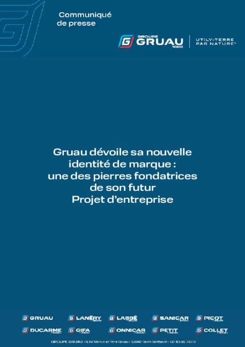 Créé en 1889, Gruau a su s’adapter jusqu’à devenir le leader européen du véhicule utilitaire transformé. Son objectif est d’être un acteur majeur et un apporteur de solutions de mobilité auprès des professionnels d’aujourd’hui et de demain. Le nouveau logo et la promesse de marque réaffirmée « UTILY-TERRE PAR NATURE © » incarnent les valeurs qui le guident : expertise dans les solutions ; engagement durable (environnemental et sociétal) ; générosité dans les relations humaines ; montée en gamme