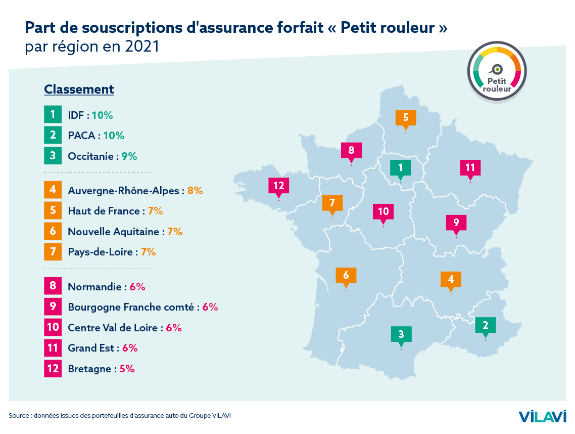 Il existe toutefois d’importantes différences régionales : c’est en région PACA et en Île-de-France que l’on souscrit le plus de contrats « petit rouleur » avec une part qui monte à 10 % des contrats, suivi de l’Occitanie (9 %) alors que seuls 6 % des automobilistes optent pour ce type d’assurance dans les régions Bourgogne-France-Comté, Centre Val-de-Loire, Grand Est et Normandie ou encore 5 % en Bretagne. « Les contrats forfait kilométrique sont plus adaptés dans les régions bien desservies par les transports en commun et plus urbaines, mais également plébiscités des jeunes conducteurs, pour réduire le montant de leur prime, ou des retraités qui souvent utilisent moins leur véhicule, mais avec le télétravail, les cartes sont rebattues, et une cible beaucoup plus large d’automobilistes peut être concernée ! », conseil David Guyonnet.