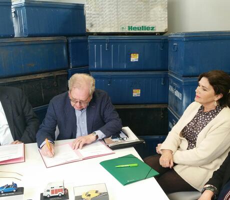 Ce don permet à notre Département de perpétuer la mémoire de cette aventure industrielle, emblème local. Ces décennies de vie d'entreprise seront consultables par les Deux-Sévriens aux Archives départementales et dans un second temps, seront valorisées lors d'expositions. La perspective de nombreux souvenirs exhumés pour certains et de belles découvertes pour d'autres !  ", a souligné Gilbert Favreau, président du Conseil départemental des Deux-Sèvres, aux côtés de Gérard Quéveaulors de la signature de la convention de don du fonds d'archives de l'entreprise Heuliez, mardi 25 février 2020 à la Maison du Département à Niort. Etaient également présentes Esther Mahiet-Lucas, conseillère départementale en charge de la culture et Aude Seillan, directrice des Archives départementales. (voir photo ci-jointe)