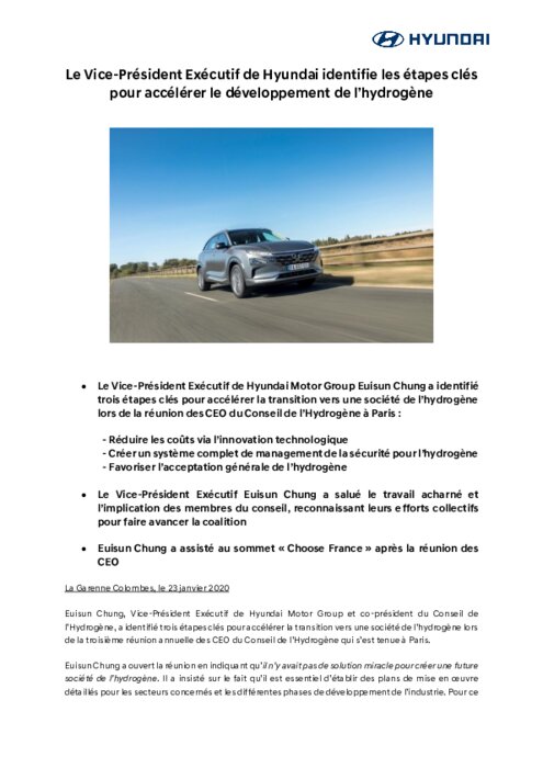 Euisun Chung, Vice-Président Exécutif de Hyundai Motor Group et co-président du Conseil de l’Hydrogène, a identifié trois étapes clés pour accélérer la transition vers une société de l’hydrogène lors de la troisième réunion annuelle des CEO du Conseil de l’Hydrogène qui s’est tenue à Paris.