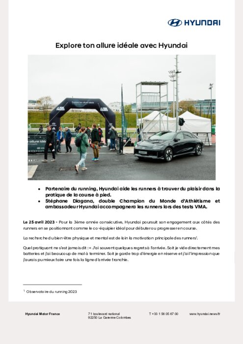 Pour la 3ème année consécutive, Hyundai poursuit son engagement aux côtés des runners en se positionnant comme le co-équipier idéal pour débuter ou progresser en course. La recherche du bien-être physique et mental est de loin la motivation principale des runners.