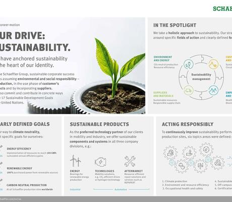 La vitrine présente également des sources énergétiques alternatives, tels que l'hydrogène, pour des applications stationnaires et mobiles. « Chez Schaeffler, nous prenons notre responsabilité environnementale et sociale au sérieux. Le développement durable est inscrit dans notre ADN et fait partie intégrante de notre feuille de route 2025 », a déclaré Klaus Rosenfeld, CEO du groupe. « Avec nos technologies innovantes en matière de chaîne cinématique, de châssis et de mobilité alternative et grâce à notre grande compréhension de la chaîne énergétique, nous apportons une contribution majeure à la réalisation des objectifs climatiques mondiaux et participons au développement durable qui fait avancer le monde. »