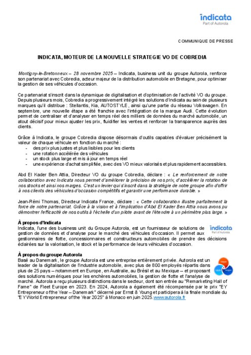Indicata, moteur de la nouvelle stratégie VO de Cobredia