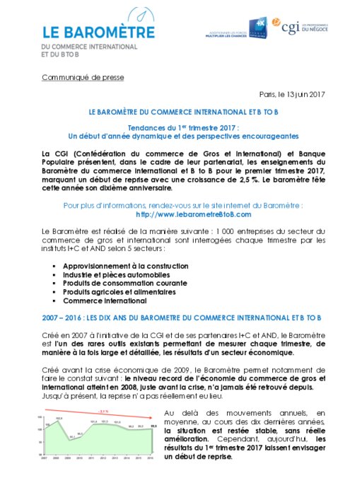 L’activité de l’approvisionnement d’industrie de pièces détachées automobiles voit son chiffre d’affaires progresser de +2 % comparé au 1er trimestre 2016. 45 % des entreprises prévoient une hausse de leur activité et 27 % envisagent le recrutement de nouveaux salariés.