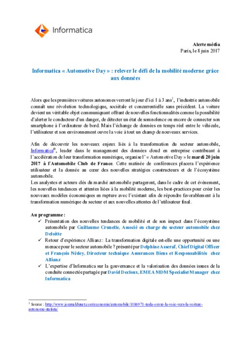Informatica: Automotive Day le 20 juin