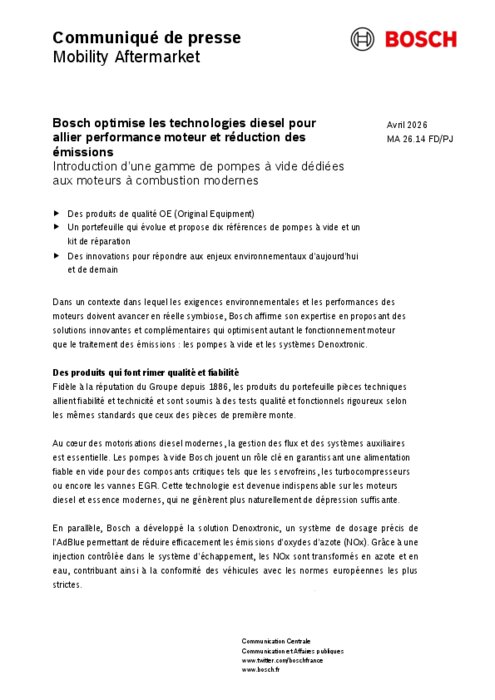 Dans un contexte dans lequel les exigences environnementales et les performances des moteurs doivent avancer en réelle symbiose, Bosch affirme son expertise en proposant des solutions innovantes et complémentaires qui optimisent autant le fonctionnement moteur que le traitement des émissions : les pompes à vide et les systèmes Denoxtronic.