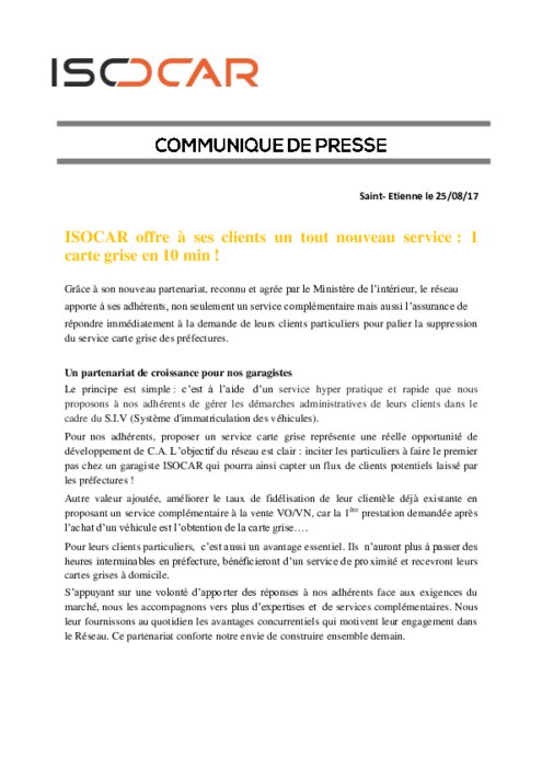 Grâce à son nouveau partenariat, reconnu et agrée par le Ministère de l’intérieur, le réseau Isocar apporte à ses adhérents, non seulement un service complémentaire mais aussi l’assurance de répondre immédiatement à la demande de leurs clients particuliers pour palier la suppression du service carte grise des préfectures.