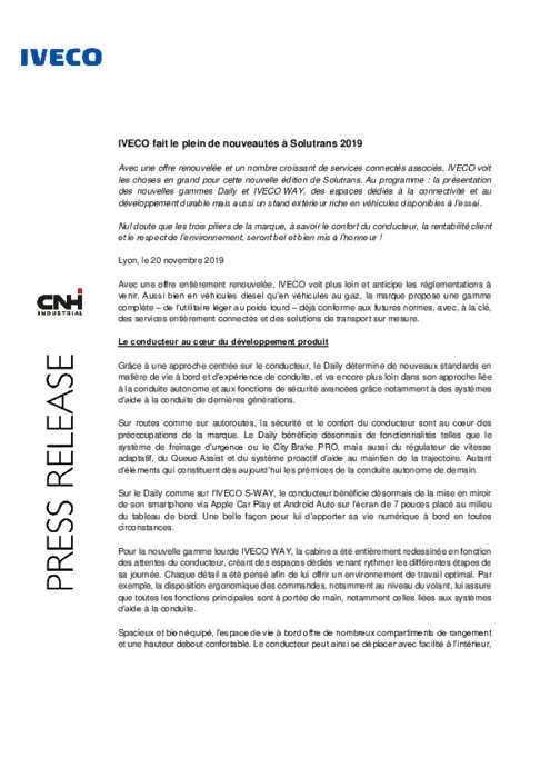 Iveco fait le plein de nouveautés à Solutrans 2019