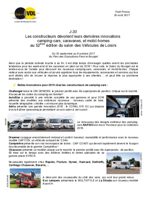 J-30: 52ème édition du salon des VDL du 30/09 au 08/10