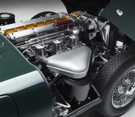 Le six-cylindres en ligne XK, 3,8 litres et 265 chevaux, bénéficie d’’un radiateur en aluminium de forme identique à celui de 1961, d’un ventilateur de refroidissement électrique, d’un allumage électronique pour un usage facile au quotidien, ainsi que d’un échappement en acier inoxydable poli. Ce nouvel échappement est identique en dimension à celui d’origine en acier ordinaire mais il procure un bruit légèrement plus profond ainsi qu’une meilleure longévité.