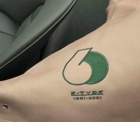 - Les éléments de design sur mesure incluent un logo commémoratif “E-type 60”, qui orne l’écusson du capot, le bouchon de réservoir, la plaque d’identification châssis et le cadran de la montre de bord, incluse dans le compteur de vitesse, développée en c