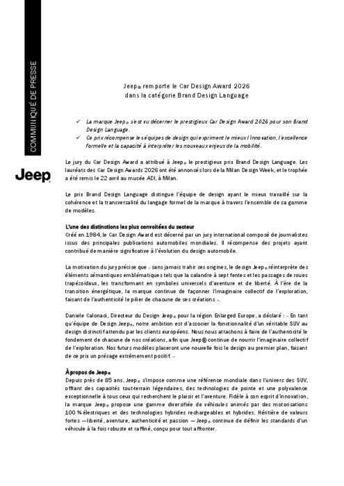 Créé en 1984, le Car Design Award est décerné par un jury international composé de journalistes issus des principales publications automobiles mondiales. Il récompense des projets ayant contribué de manière significative à l’évolution du design automobile.