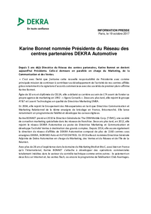 K. Bonnet Présidente du Réseau des centres partenaires Dekra