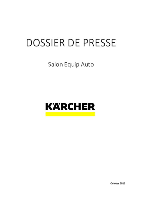 Equipementiers 10 octobre 2022 - 10:36 À l’occasion du salon Equip Auto qui se déroulera du 18 au 22 octobre prochain, Kärcher présentera aux professionnels des produits innovants et plusieurs nouveautés, dont les deux derniers portiques de lavage de la marque allemande. PDF (557 Ko) Télécharger