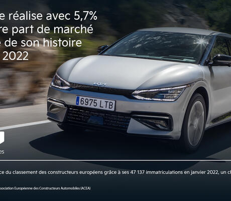En janvier, Kia a réalisé une nouvelle part de marché record en Europe avec 5,7%, la plus élevée de toute son histoire. Selon les nouvelles données publiées par l’Association Européenne des Constructeurs Automobiles (ACEA), Kia a également enregistré un record d’immatriculations en janvier et s’est hissée ainsi au quatrième rang des constructeurs en termes de ventes de véhicules de tourisme neufs, son meilleur classement jusqu’à présent.