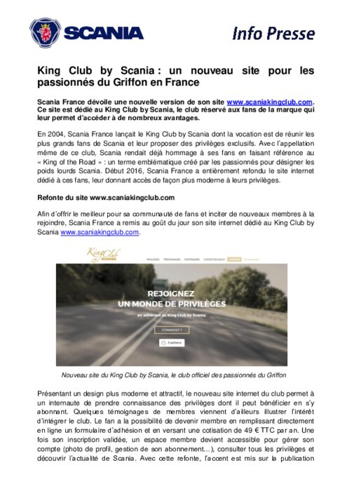 King Club de Scania : un nouveau site pour les passionnés