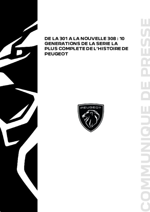 De la Peugeot 301 à la nouvelle Peugeot 308, 10 générations se sont succédées, et 90 années d’histoire automobile et de progrès technique se sont déployées. Avec une génération absente – la Peugeot 303 n’aura jamais existé ! –, une entorse à la logique temporelle – une 309 apparaît entre 305 et 306 –, deux titres de Voiture de l’Année depuis l’an 2000, et des excursions remarquées en Rallyes.