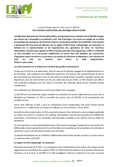 La FNA a rencontré des membres de la DGCCRF chargés des métiers de l’auto vendredi 5 avril, afin d’échanger sur la prise en compte de la réalité économique des entreprises de fourrières dans la structuration tarifaire de la DGCCRF. Cette réunion a également été l’occasion de débattre sur les appels d’offres pour le dépannage sur autoroute, la réforme de la la réglementation et de l’organisation des opérations de mises en fourrières automobiles, réforme pour laquelle la FNA est partie prenante.
