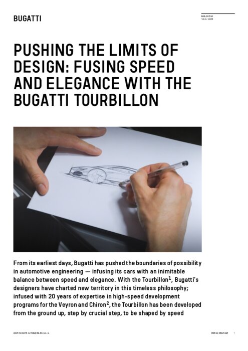 Depuis ses débuts, Bugatti repousse les limites du possible dans le domaine de l'ingénierie automobile, en dotant ses voitures d'un équilibre inimitable entre vitesse et élégance. Avec la Tourbillon, les designers de Bugatti ont exploré de nouveaux horizons dans le cadre de cette philosophie intemporelle. Fruit de 20 ans d'expertise dans les programmes de développement à grande vitesse pour les modèles Veyron et Chiron, la Tourbillon a été conçue de A à Z, étape par étape, pour être façonnée par la vitesse, tout en reflétant l'élégance caractéristique de Bugatti. Dans le dixième épisode de la série documentaire « A New Era », la marque française dévoile la magnifique efficacité du design de la Tourbillon.