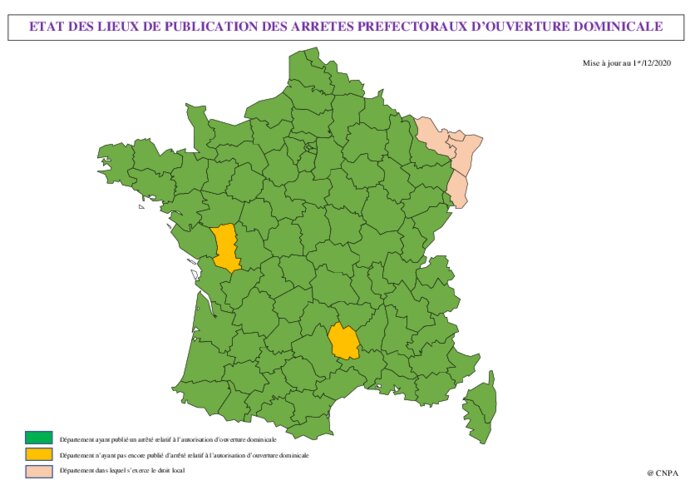 La carte des ouvertures autorisées le dimanche (CNPA)