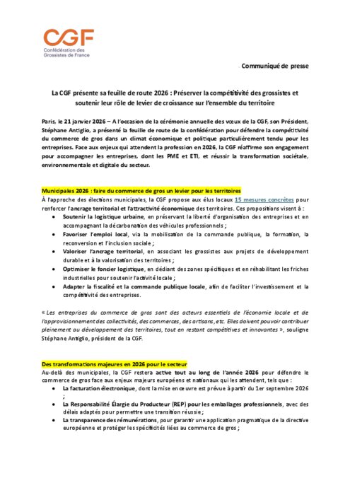 La CGF présente sa feuille de route 2026