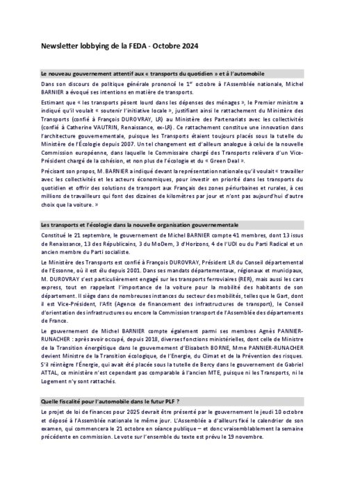 Services 04 octobre 2024 - 11:58 Dans son discours de politique générale prononcé le 1er octobre à l’Assemblée nationale, Michel Barnier a évoqué ses intentions en matière de transports... PDF (153 Ko) Télécharger